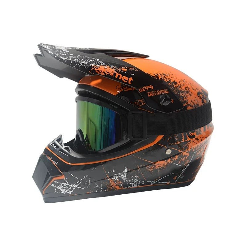 Tuttio Dirt Bike Helmet blends rugged protection with thoughtful design, built for young adventurers and trail riders. It features a tough ABC-engineered shell paired with a high-density foam liner to deliver full-head impact resistance. The aerodynamic, full-face structure reduces wind drag while maximizing safety and coverage.